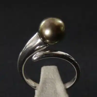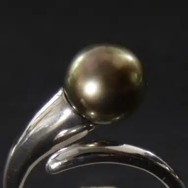 Perle de Tahiti Ø 9 mm sélectionnée pour la qualité de ses orients et de son lustre.