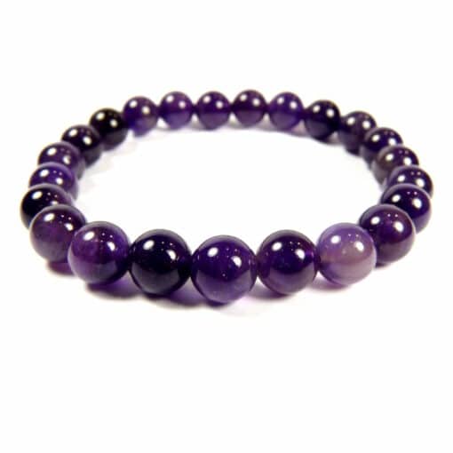 Bracelet améthyste Ø 8 mm. Pour poignet Ø 16-18 cm, extensible. Emballage cadeau et écrin offerts, certificat d’authenticité. Vendu et expédié par Bijouterie Azurite Bergerac, France