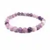 La lépidolite est une pierre fine de la famille des micas. Elle présente souvent des teintes allant du rose violacé au lilas. Elle contient naturellement du lithium. Découverte au 18e siècle, la lépidolite tire son nom du grec « lepidos », signifiant « écaille », en référence à sa texture feuilletée. On la trouve principalement au Brésil, à Madagascar, en Russie, en Afghanistan et aux États-Unis.
