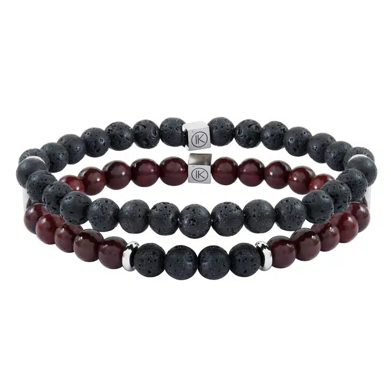 Bracelet pour homme en jaspe rouge et pierre de lave.
