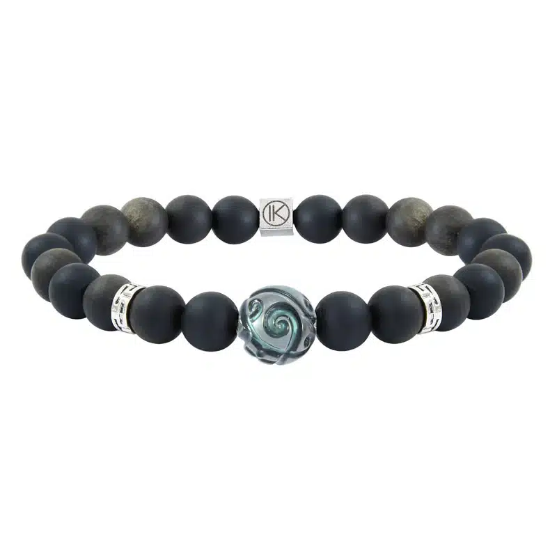 Bracelet homme obsidienne dorée et perle de Tahiti gravée – L
