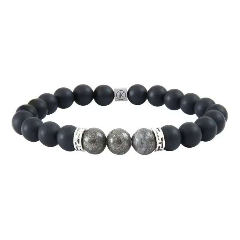 Bracelet pour homme en pyrite de fer et agate noire.