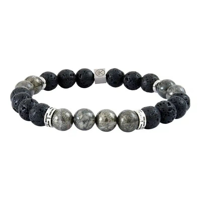 Bracelet pour homme en pyrite de fer et pierre de lave.