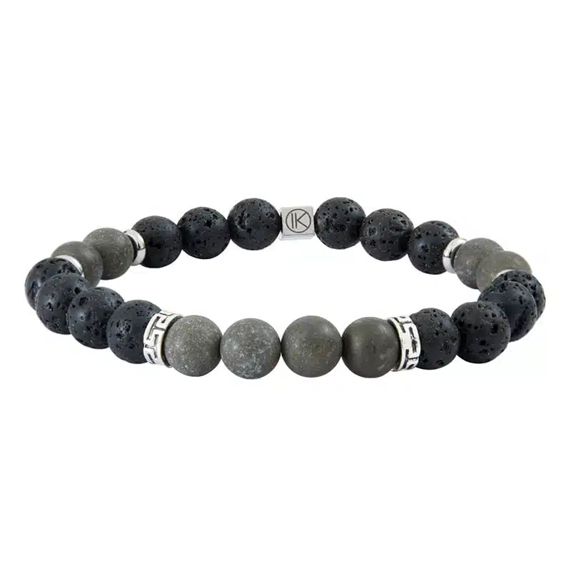 Bracelet pour homme en pyrite de fer et pierre de lave.