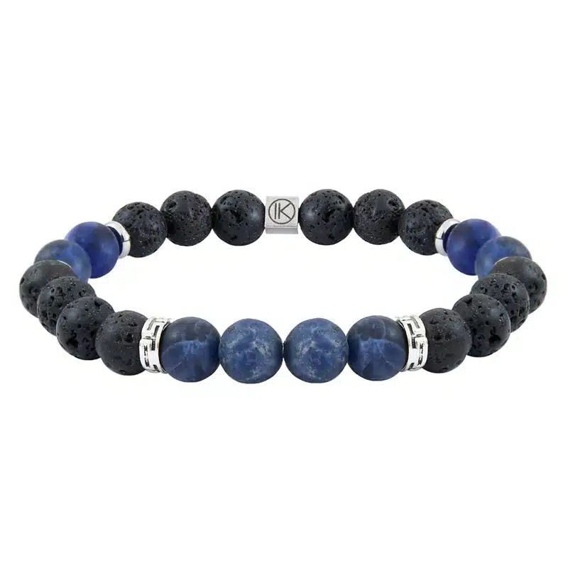 Bracelet pour homme en sodalite et pierre de lave.