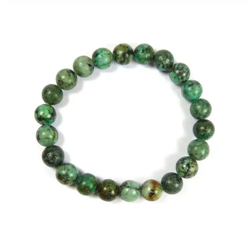 La turquoise africaine n’est pas une véritable turquoise, mais une variété de jaspe aux teintes bleu-vert mouchetées de brun et de noir. On trouve la turquoise africaine en Afrique du sud, Namibie et dans d’autres régions du continent africain. Utilisée depuis longtemps dans les traditions africaines, cette pierre était considérée comme un outil de guidance spirituelle et de transformation personnelle, souvent associée à la croissance intérieure et à l’éveil de l’âme.