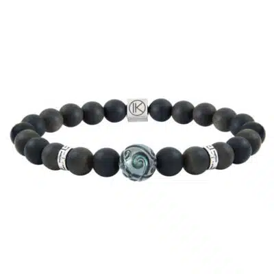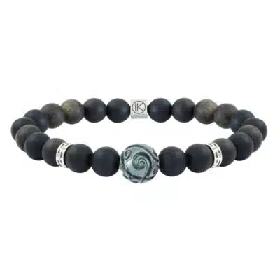 Bracelet homme pierre de lave, obsidienne, perle de Tahiti gravée – L
