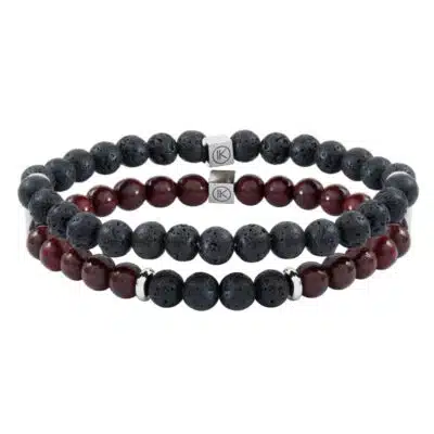 Bracelet homme jaspe rouge, agate noire, perle de Tahiti gravée – M