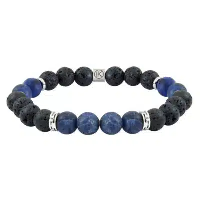 Bracelet homme sodalite, agate noire, perle de Tahiti gravée – M