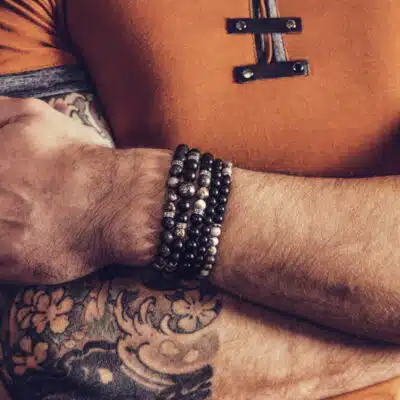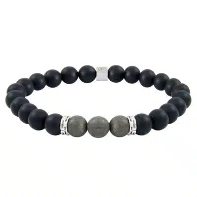Bracelet homme pyrite et perle de Tahiti gravée – L