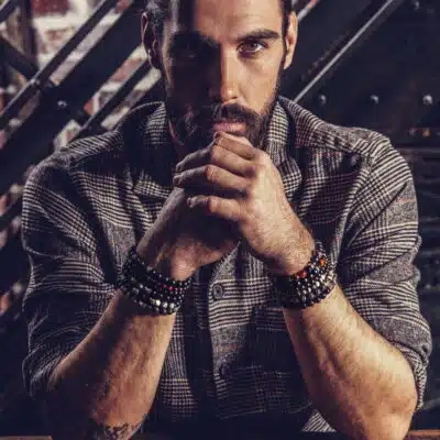 Bracelet homme pyrite et perle de Tahiti gravée – M
