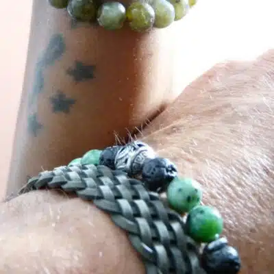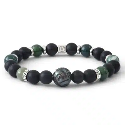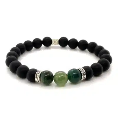 Bracelet homme agate mousse, perle de Tahiti gravée – L