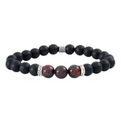 Bracelet homme pierre de lave, obsidienne, perle de Tahiti gravée – M