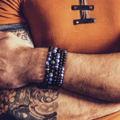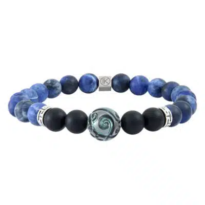 Bracelet homme sodalite, agate noire, perle de Tahiti gravée – L