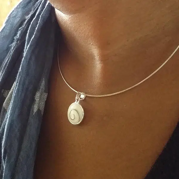 C’est l’histoire d’un petit coquillage porte bonheur, lié à une légende du IV ème siècle faisant état d’une guérison miraculeuse. Il s’agit plus précisément de l’opercule du coquillage. On trouve l’Oeil de Sainte Lucie notamment sur les rivages méditerranéens, et plus particulièrement en Corse. Sur l’île de beauté, on prétend qu’il éloigne le mauvais œil, favorise la chance, la réussite et la richesse. L’Oeil de Sainte Lucie est aussi appelé Oeil de Shiva, Oeil de Vénus ou Oeil de la Vierge. Esthétiquement, les pendentifs en Oeil de Sainte Lucie se distinguent par cette signature très reconnaissable en forme de spirale. Encore une surprenante invention de la nature… Azurite vous propose un vaste choix de pendentifs en Oeil de Sainte Lucie.